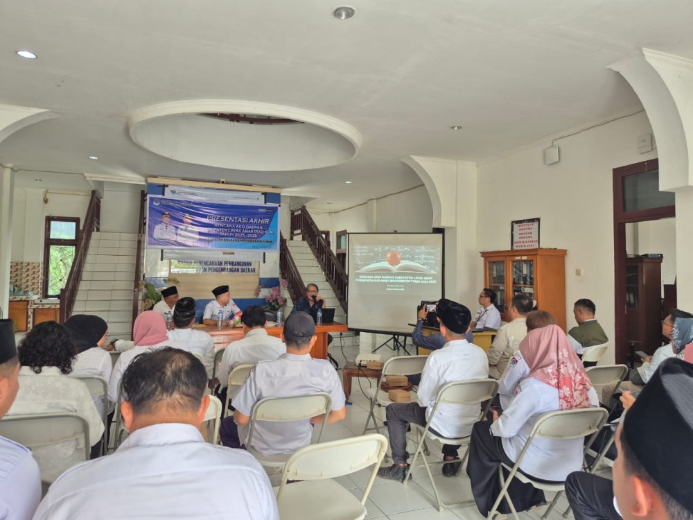 Pemerintah Kabupaten Bolaang Mongondow Timur melalui Badan Perencanaan Pembangunan Daerah (Bappeda) melaksanakan kegiatan Presentasi Akhir Rencana Aksi Daerah Kabupaten Layak Anak (RAD KLA) pada Rabu, 29 Oktober 2025 bertempat di ruang rapat Kantor Bappeda. Kegiatan ini merupakan tindak lanjut dari pelaksanaan Focus Group Discussion Penyusunan RAD KLA tanggal 16 Juni 2025 yang lalu.